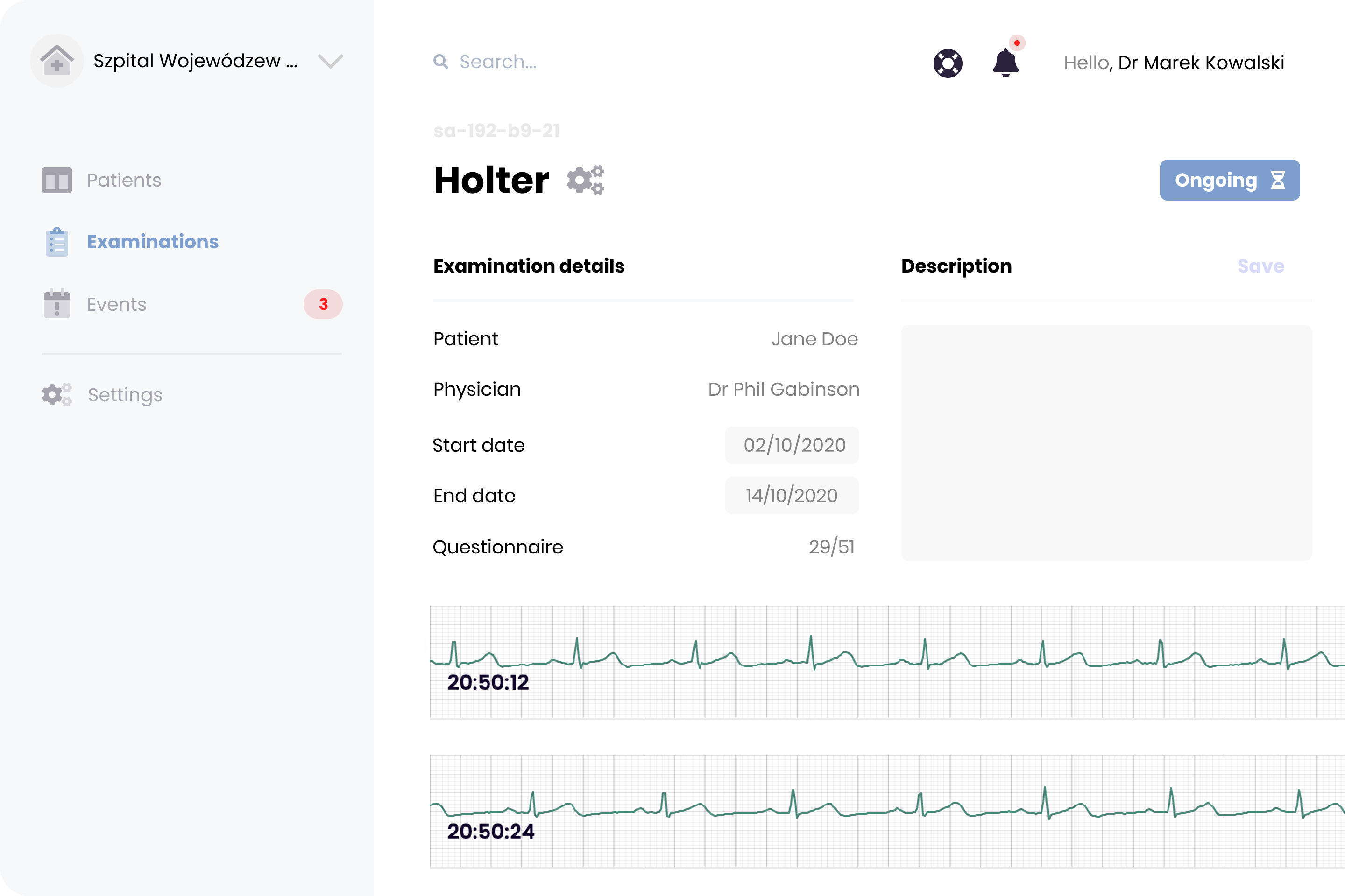 Analiza korelacji zgłaszanych dolegliwości (takich jak kołatanie serca, uczucie nieregularnego rytmu serca, duszności, zawroty głowy, omdlenia, utrata świadomości, zmęczenie) z występowaniem zaburzeń rytmu oraz wstępna ocena rodzaju tych zaburzeń.