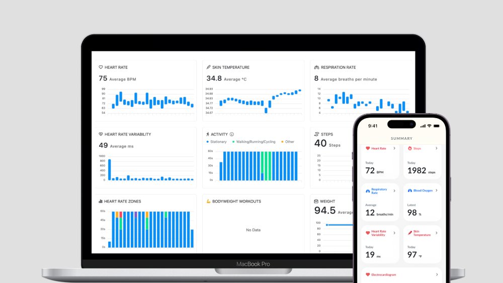 Pomiary te są unikalnymi sygnałami życiowymi, które dostarczają informacji o Twoim zdrowiu. Zazwyczaj są one zbierane w szpitalach. Pomiar sygnału EKG polega na pomiarze niewielkich ładunków elektrycznych, które powstają na skórze, powstające w wyniku aktywności elektrofizjologicznej mięśnia sercowego. Na podstawie tego sygnału można zweryfikować czy nasz układ sercowo-naczyniowy działa prawidłowo. EKG jest jednym z najważniejszych pomiarów. Oddech jest prostym pomiarem zbieranym za pomocą zaawansowanych czujników impedancyjnych, który daje informacje o płucach oraz liczbie i głębokości wdechów i wydechów.