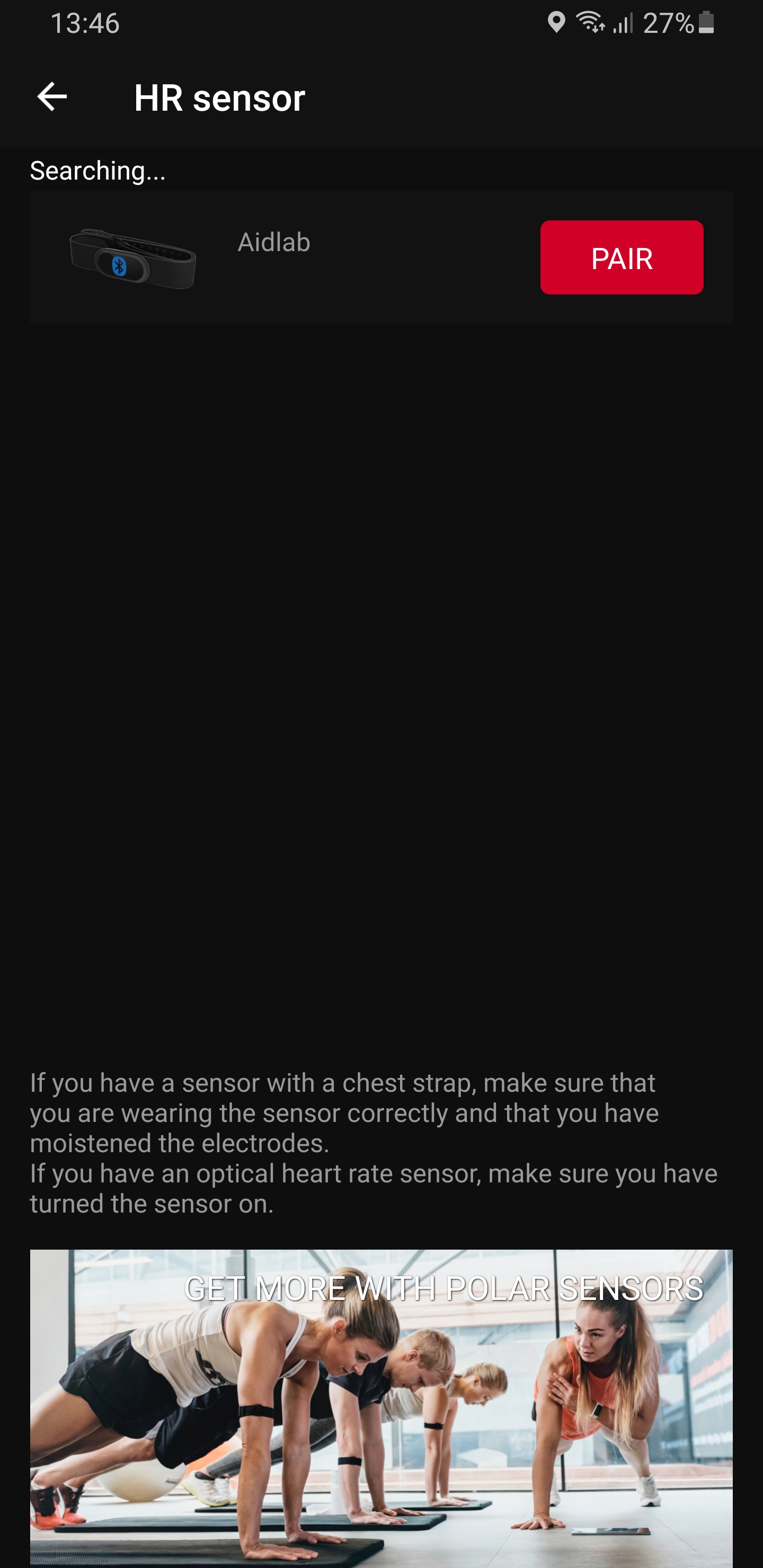 Simply log in to your Polar account and choose the HR Sensor page in your Settings. Select Aidlab from the list.